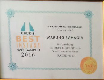 ウブド・ベスト・ナシチャンプルに輝いた賞状