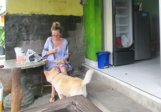 犬の散歩の途中なのか、ナシチャンプルを食べるついでの、犬の散歩なのか?