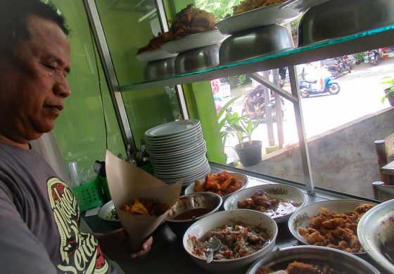 店にはローカルワルンにしては、立派な座席が有ります。が交通量が多い通りの脇なので、賑やかです。静かに食べるなら、持ち帰りブンクスがオススメ。