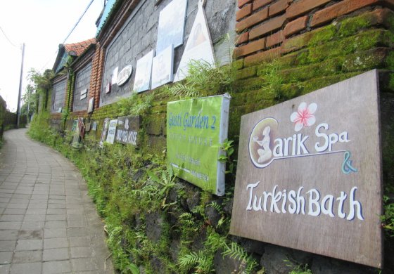 ウブド王宮からチャンポワンの方向へ300m程すすみ、右手に折れ坂道を登る。