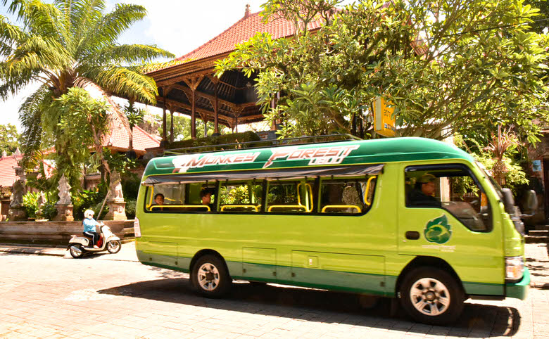 途中幾つかのバス停に停車しますが、王宮から約10分弱で停留所から「ビュー」と快適にモンキーフォレスト受付到着。暑いバリの昼下がりなど重宝します。