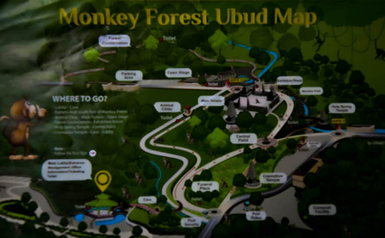 モンキーフォレストはバリ西部のバリ舞踏や絵画で有名なウブドにあり周辺の他の観光をするのに便利な場所にあります。