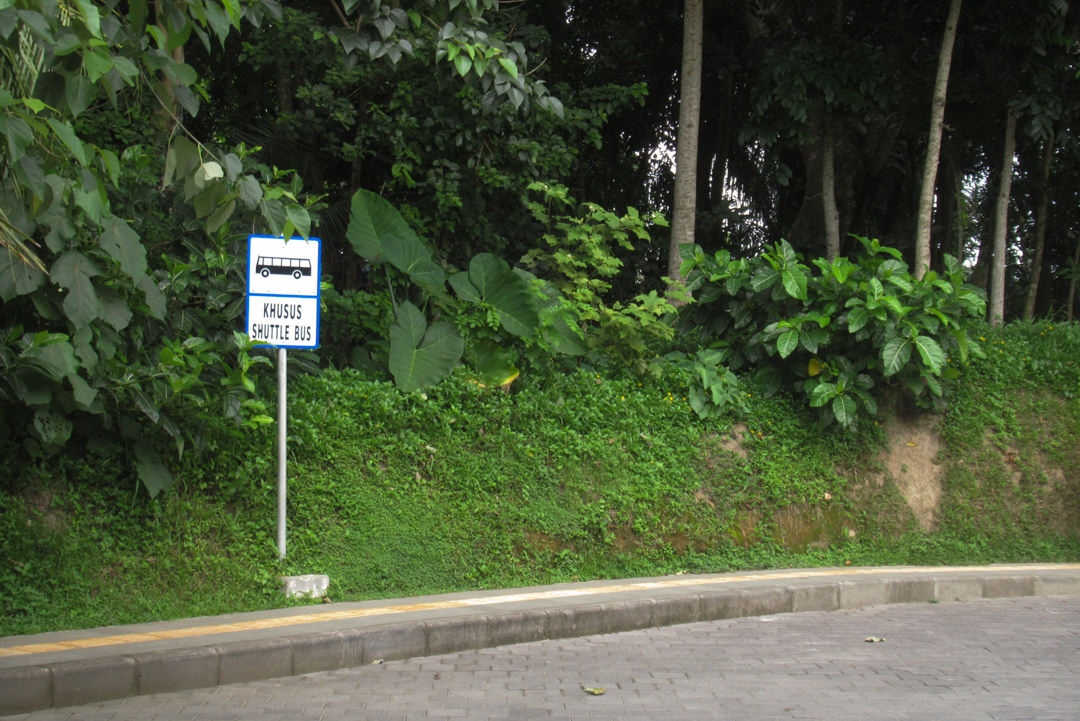 バスは派手で目立つのですが、バス停が少々解りにくいのが難点。コチラはモンキーフォレストのバス停。受付から少し離れた場所にあります。来る時はウブド王宮近くのポロの斜め前にバス停が有り。