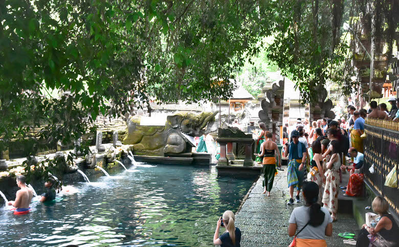 寺院の泉から湧き出る「浄化力が高い聖水と沐浴」が有名で、バリ全土か参拝客が絶えない。