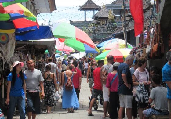 夕方の散策がてら買い物が楽しめるウブドマーケット路上