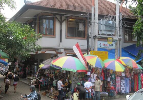 王宮の路地を挟んだ斜め向かいにある。ウブド市場はウブドの中心地。